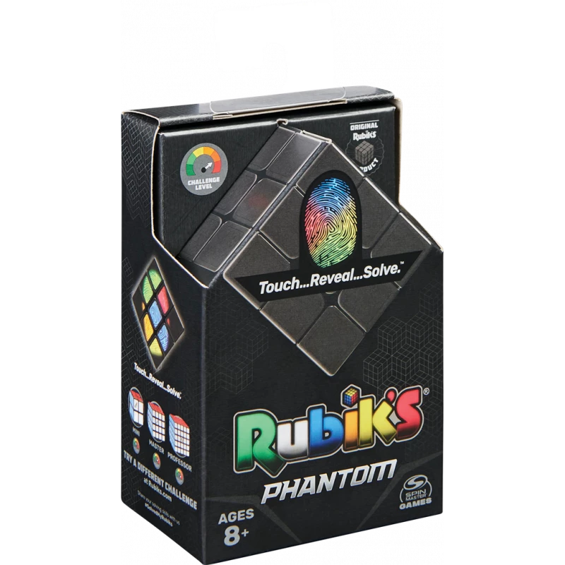 Rubik’s Cube – 3×3 Phantom est un cube entièrement noir, qui ne révèle ses couleurs que grâce à la chaleur, uniquement aux endroits où l’on pose la main.