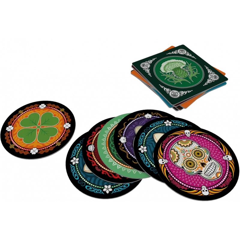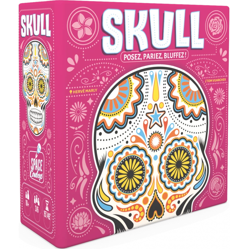 Pour jouer, placez devant vous un tapis face Skull visible. Prenez ensuite en main un paquet de 4 cartes identiques en cachant toujours leur face aux autres joueurs.