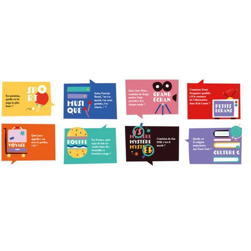 Des thématiques amusantes: cinéma, musique, bouffe, voyage, culture G, sport, petits écrans et… mystère