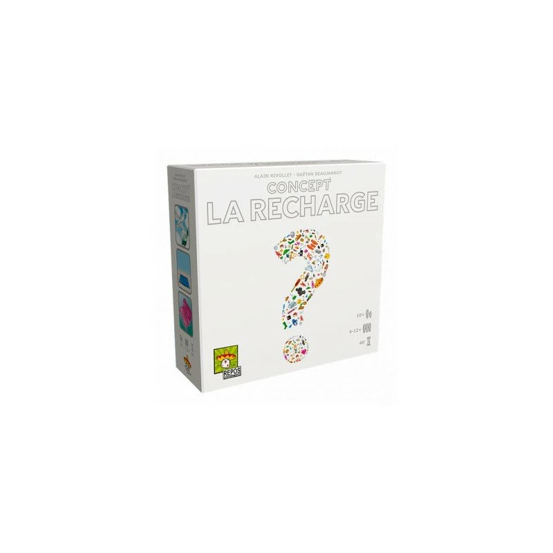 Concept : La Recharge est une extension de Concept. Elle contient un jeu de nouvelles cartes thématiques (soit 990 nouveaux mots et expressions) pour diversifier et augmenter le nombre de concepts que les joueurs doivent deviner.