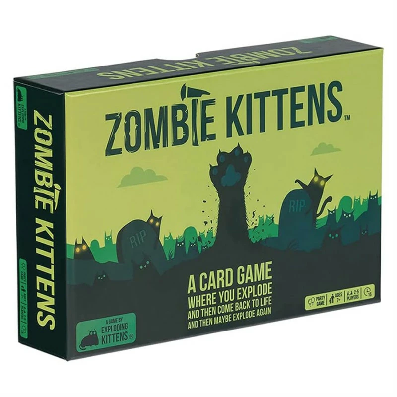 Désormais, si vous tirez un chaton explosif et disposez d’un chaton zombie, remettez la carte mortelle dans la pioche, continuez à jouer, et ramenez un autre joueur d’entre les morts !