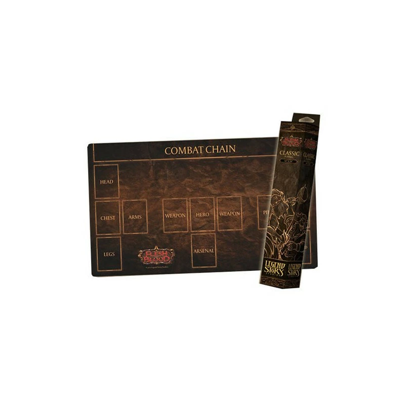 - Tapis aux couleurs de Flesh and Blood avec des zones définies pour placer vos cartes