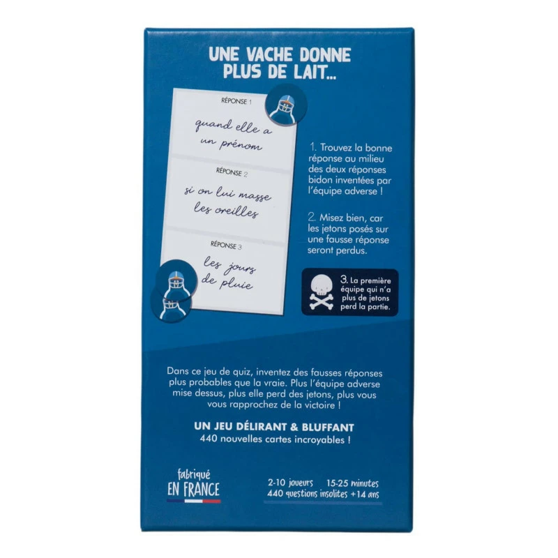 Dans ce jeu de quiz, inventez des fausses réponses plus probables que la vraie. Plus l’équipe adverse mise dessus, plus elle perd des jetons, plus vous vous