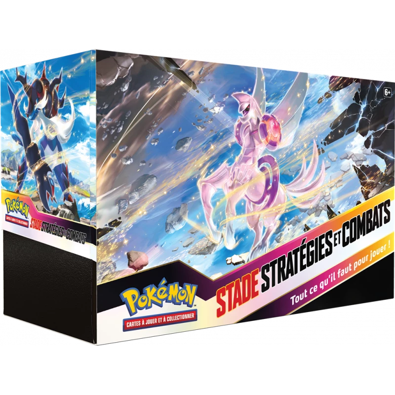 Construisez deux decks à partir de puissants éléments, puis jouez immédiatement avec ce set Stade Stratégies et Combats pour 2 joueurs. Chaque Stade Stratégies et Combats Épée et Bouclier – Astres Radieux du JCC Pokémon contient de nombreuses cartes, dont deux Boîtiers Stratégies et Combats. Chaque Boîtier Stratégies et Combats contient quatre boosters et un deck de 40 cartes comprenant une carte brillante exclusive. Vous pouvez jouer immédiatement avec ces decks, ou les améliorer avec les cartes des boosters.