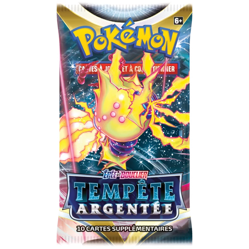Avec Pokémon Booster Epée et Bouclier Tempête argentée Lugia-VSTAR émerge des profondeurs de l’océan et répond à l’appel du mystérieux grondement… Des terres inexplorées attendent d’être découvertes aux côtés de Goupix d’Alola-VSTAR, tandis que Majaspic, Zarbi et Mysdibule se joignent à l’expédition en tant que Pokémon-VSTAR. Un combat légendaire est sur Le point d’éclater alors que Regieleki-VMAX et Regidrago-VSTAR sortent tout juste de leur torpeur. Découvrez de puissantes amitiés dans la Galerie des Dresseurs, et place à l’aventure avec l’extension Épée et Bouclier – Tempête Argentée. Un combat légendaire est sur le point d’éclater alors que Regieleki-VMAX et Regidrago-VSTAR sortent tout juste de leur torpeur. Découvrez de puissantes amitiés dans la Galerie des Dresseurs, et place à l’aventure avec l’extension Épée et Bouclier – Tempête Argentée du JCC Pokémon ! Chaque booster Pokémon contient 10 cartes.