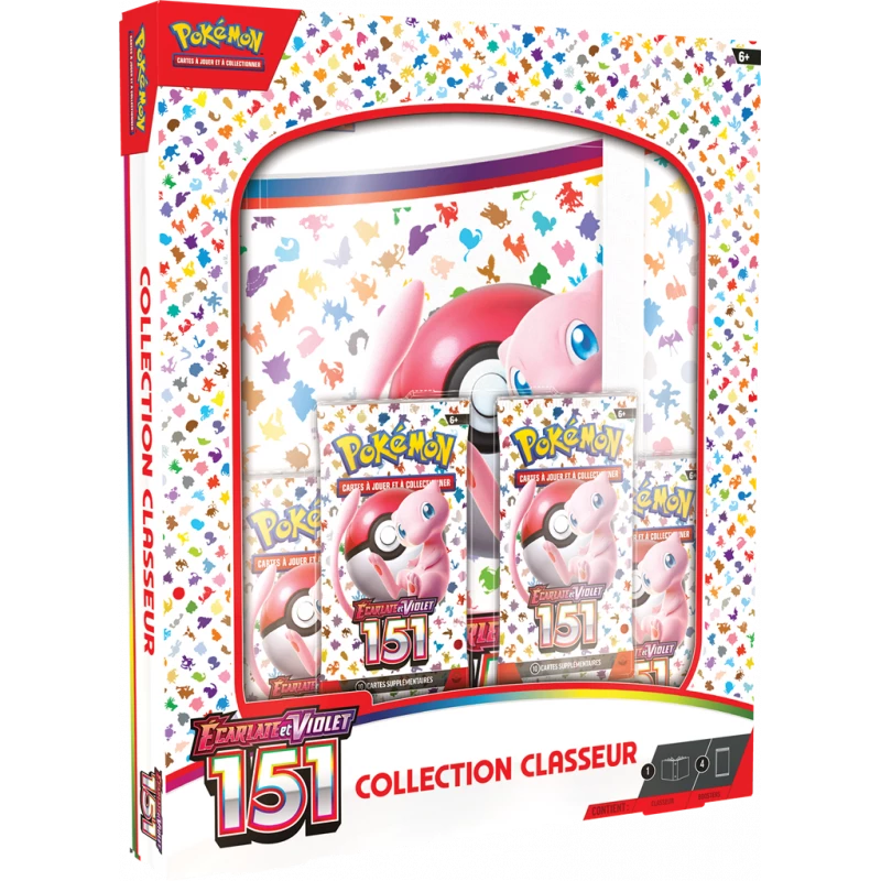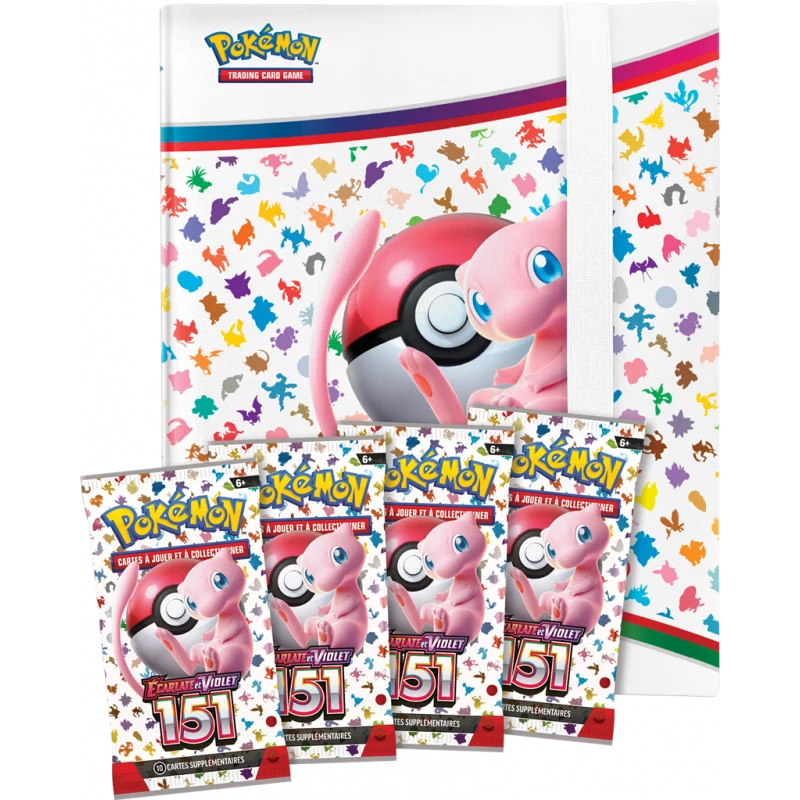 Tout comme un Pokédex, un classeur permet de suivre les progrès de votre collection de Pokémon. Avec ce classeur à 9 pochettes par page, vous pourrez ranger jusqu’à 360 cartes du JCC Pokémon. Et pour bien démarrer, cette collection comprend également 4 boosters de l’extension Écarlate et Violet – 151.