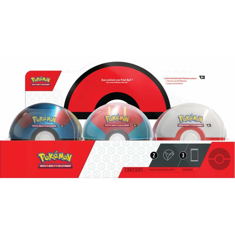 Chaque Poké Ball contient 3 boosters du JCC Pokémon et une feuille de stickers