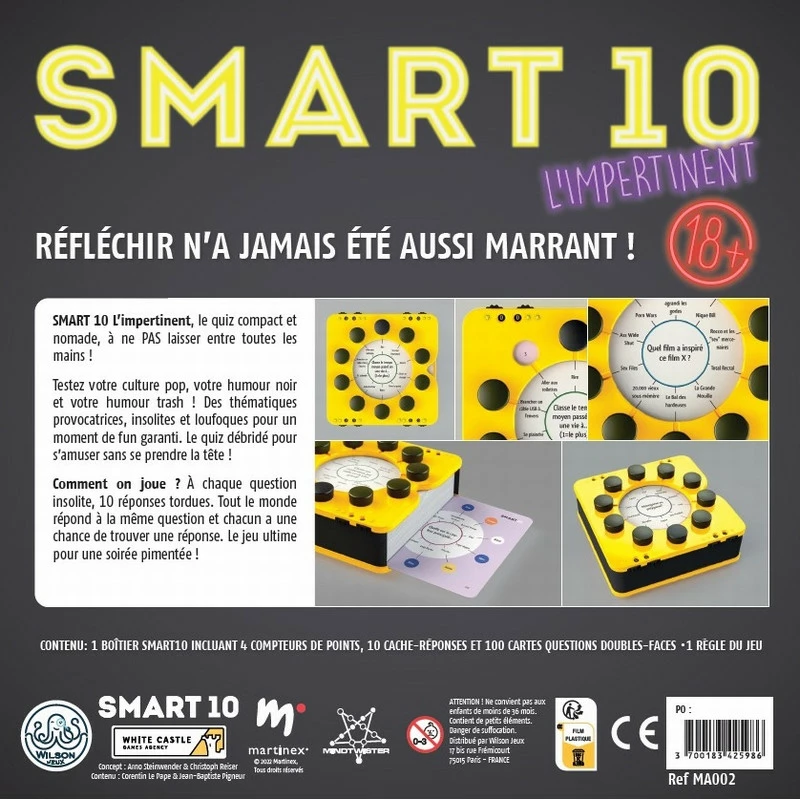 SMART 10 L’impertinent, des thématiques provocatrices, insolites et loufoques pour un moment de fun garanti. Le quiz débridé pour s’amuser sans se prendre la tête !